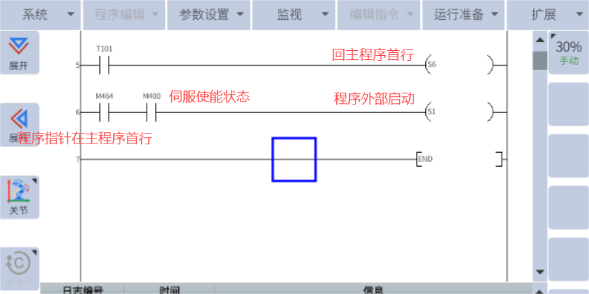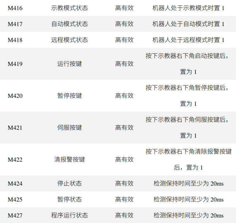注:以上“X004”是机械臂开机后一键启动的触发信号,这个信号可以更改为虚拟信号触发,也可以外部PLC触发。
