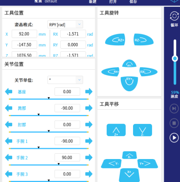 - 输出:机器人输出整型寄存器的值、末端负载等