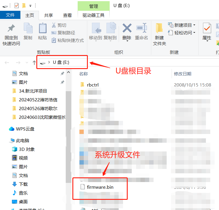 2.2.1 在U盘根目录新建一个名为“rbctrl”的文件夹,将固件升级文件复制进去。