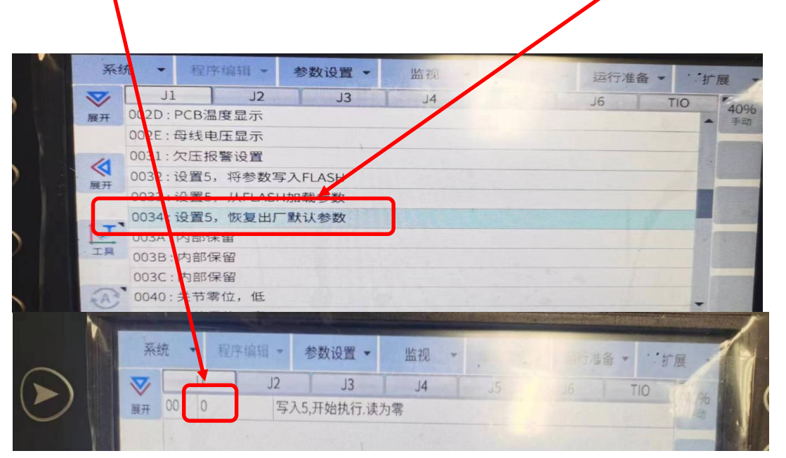 2.软件版本V3.0以上版本操作方法:点击参数设置----伺服参数-----0034恢复出厂设置如图