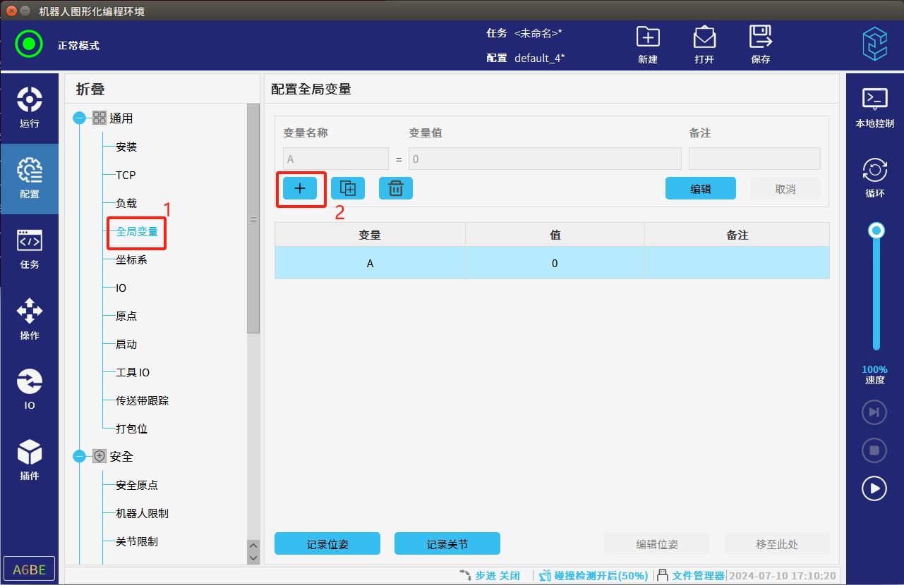 2. 使用30001端口修改全局变量时,需要定先义一个与机器人端名称一模一样的全局变量。