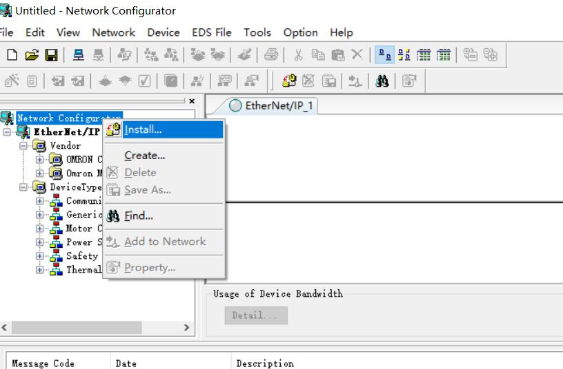 2、 首先打开Network,这个软件可以帮AG庄闲看到适配器插槽对应变量的大小,以及目标变量,右击左边栏Network Configurator图标,选择install,找到对应的EDS文件