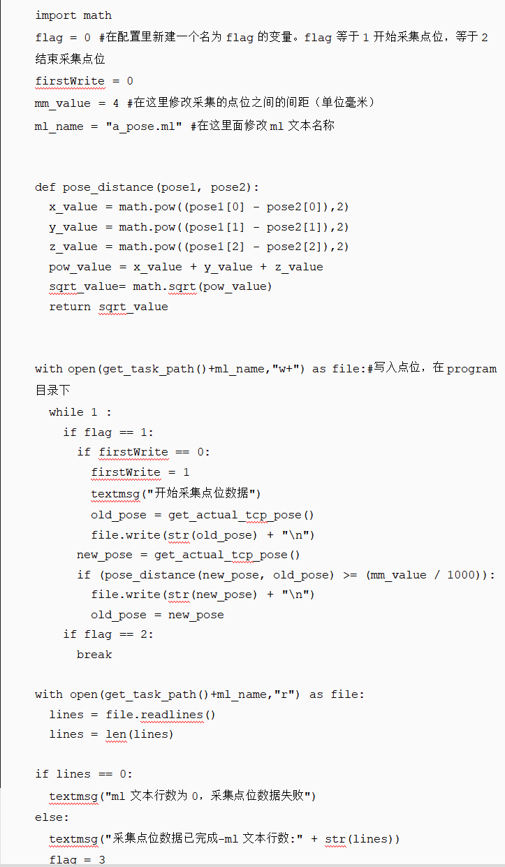 3.脚本说明:可在红框处修改采集的点位间距和ml文件的名称。