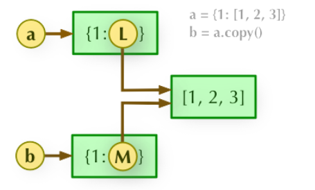# 浅拷贝, a 和 b 是一个独立的对象,但他们的子对象还是指向统一对象(是引用)。