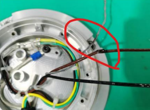 1.检查线路有无明显损坏痕迹(下图为线路损坏短路)