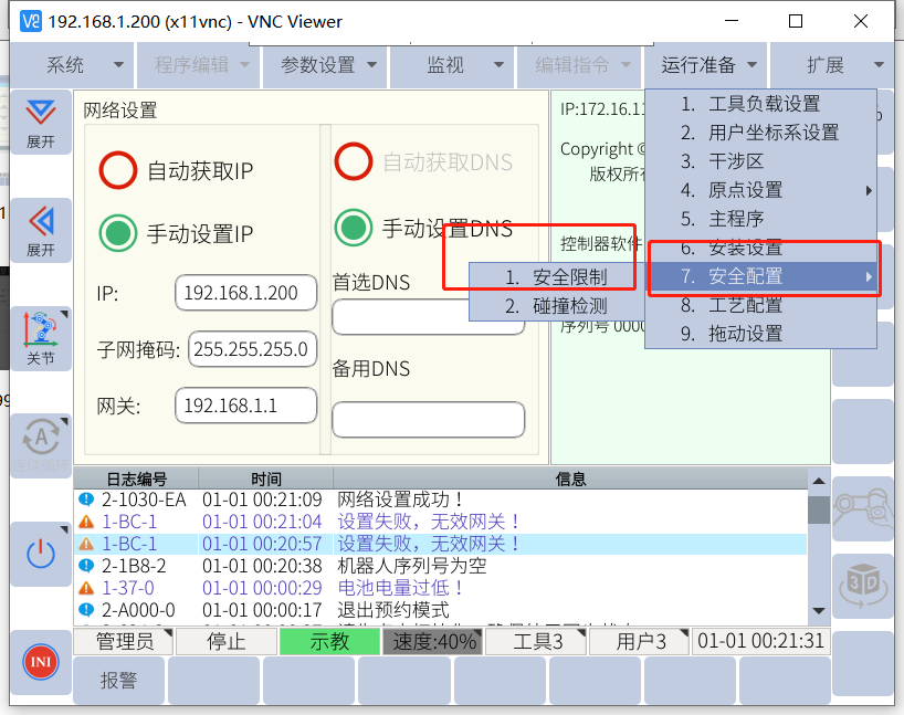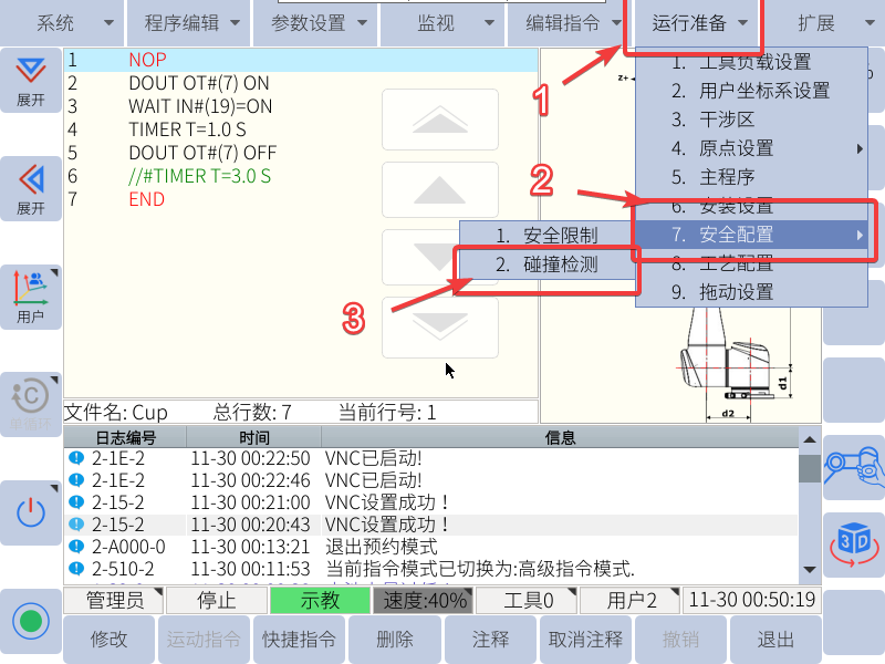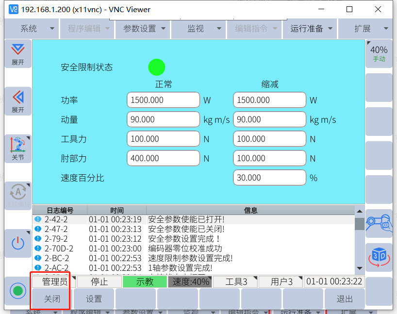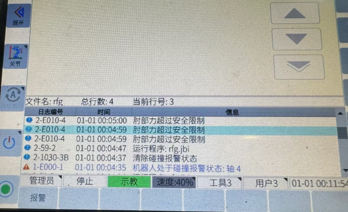 在某些情况下会出现“肘部力或者工具超过安全限制”的提示,会暂停运行的程序。