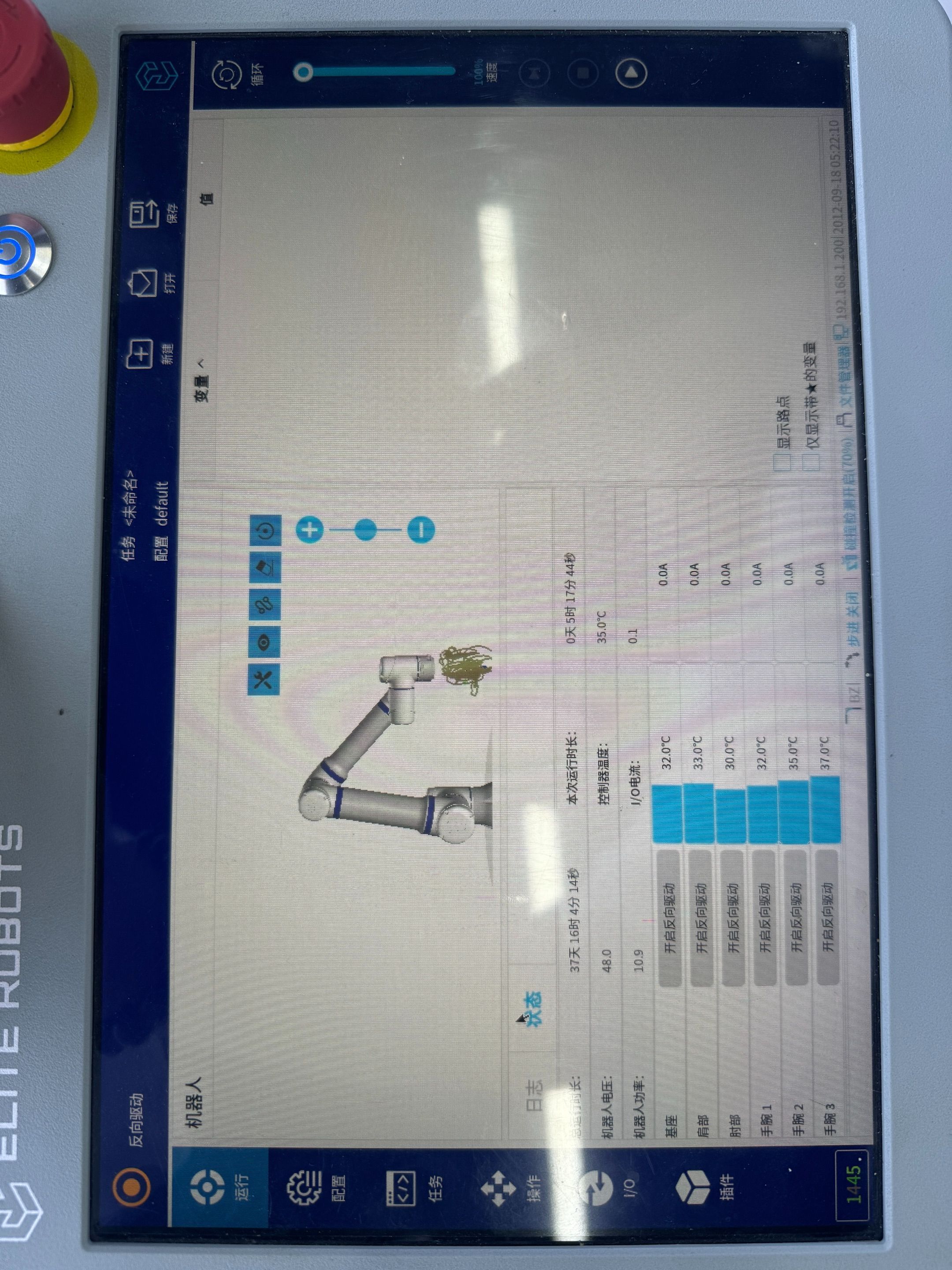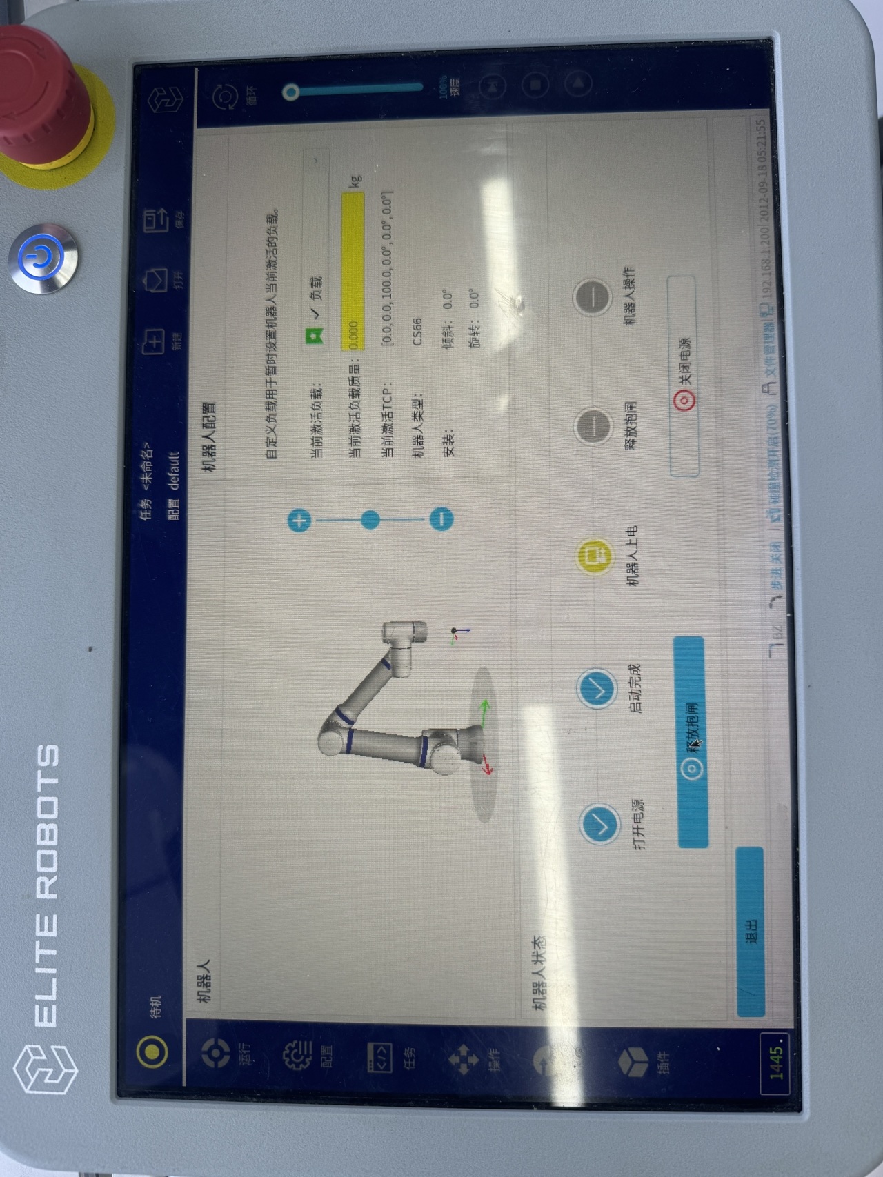 1.  测试示教器上的急停停止按钮功能: