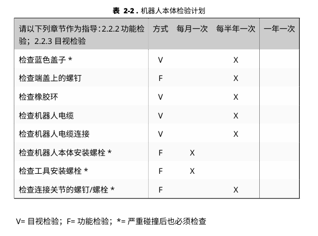 功能检验的目的是确保螺钉、螺栓、工具和机器人本体没有松动。