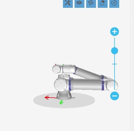 第四步:一直按着自由移动按钮,如图-4红框所示,机器人无故障的轴就会回到打包姿态,有故障的轴不会运动。(需要注意的是因为机器人其中一个轴或多个轴有故障时,有故障的轴是不会运动的,所以在移至打包位时将机器人放在空间比较开阔的地方操作且运行速度要慢,防止机器人在运动过程中碰撞到其他障碍物或者机器人关节相互碰撞)以机器人肘关节有故障为例,机器人运行到打包位时肘关节是不会运动的,如图-5所示姿态就是肘关节在-90度时运到到打包位的姿态,图-6就是机器人正确的打包位姿态。通过图5与图6对比可以发 现,机器人肘关节也就是三轴需要逆时针旋转270度才能回到正常打包位。