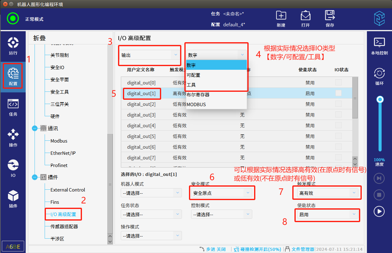 5. 使用IO/高级配置插件配置安全原点信号输出时应用版本要求2.11及以上,IO/高级配置插件版本IOExtensionConfig-1.2.11.1及以上。