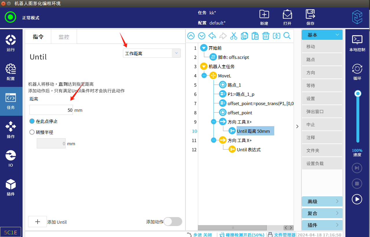 任务里基本指令自带了方向这个指令,可以实现单方向的从当前位置进行偏移距离,相比其他偏移方式更为简单,操作步骤如下图